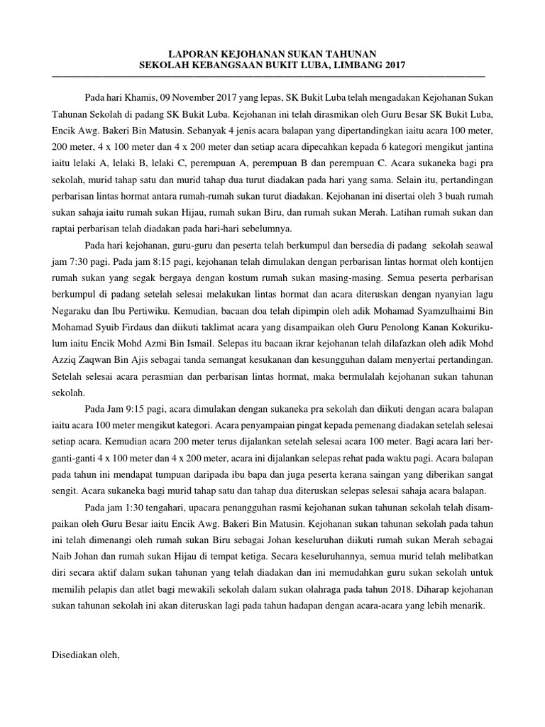 Hal ini bermakna setiap murid harus melibatkan diri secara aktif dalam salah satu acara sukan yang paling. Soalan 1 sekolah anda telah mengadakan hari sukan. Oleh itu anda bercadang untuk menulis rencana tentang kebaikan kebaikan.